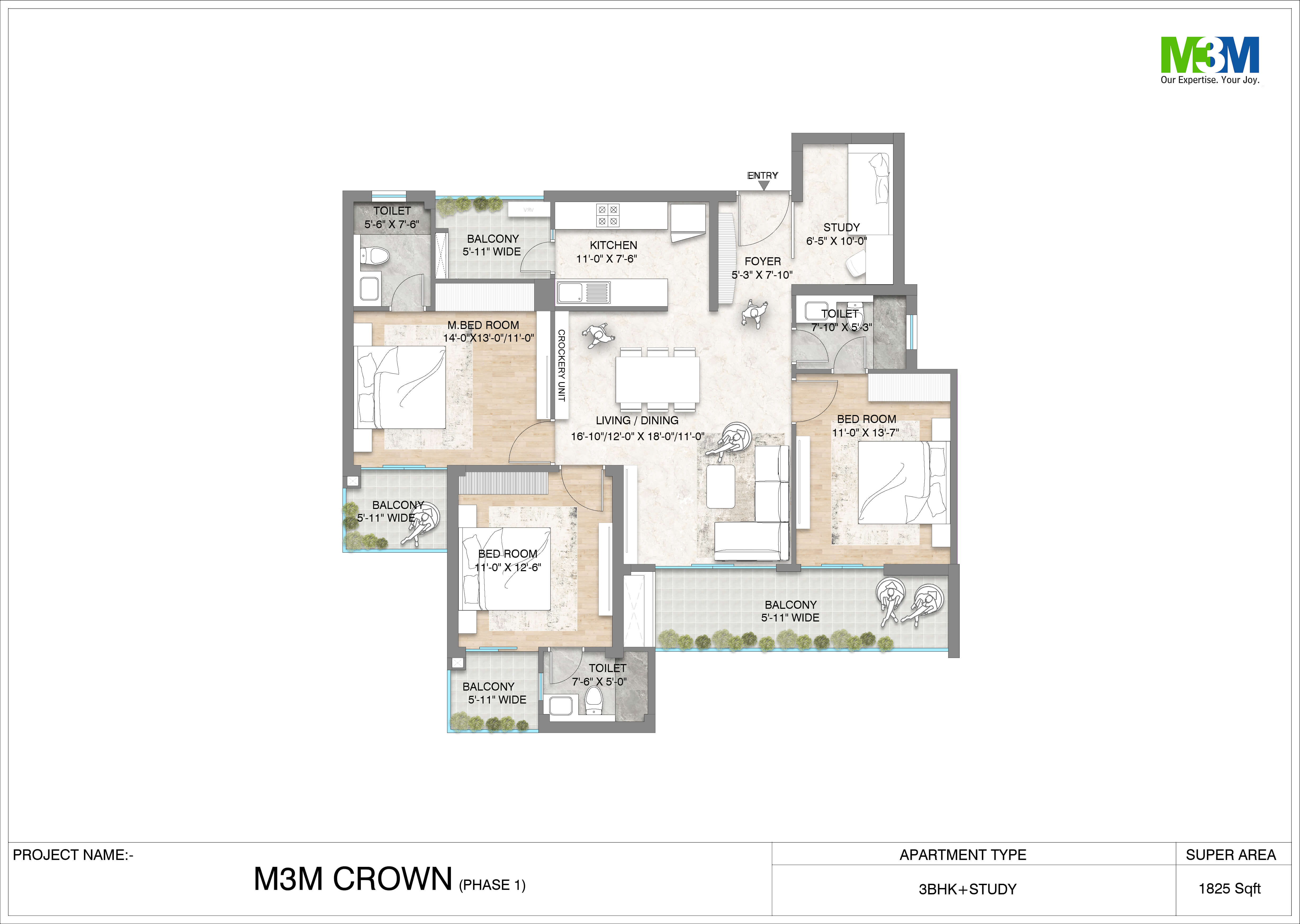 M3M Crown in Sector 111, Dwarka Expressway, Gurgaon, is a luxurious residential project that offers a unique living experience. The project is designed to provide residents with wonderful views from their spacious balconies, surrounded by luxurious greens and spectacular views.The project offers world-class amenities and great connectivity, making it an ideal living destination for those who value comfort and convenience. The floor plans are well-planned and maximize the use of floor space, providing residents with ample space to indulge in their whims and fancies.The project is designed around greenery, with every apartment facing one of the gardens. The gardens have unique structures and spaces, providing residents with a variety of options for leisure activities such as playing, meditating, jogging, or sports.