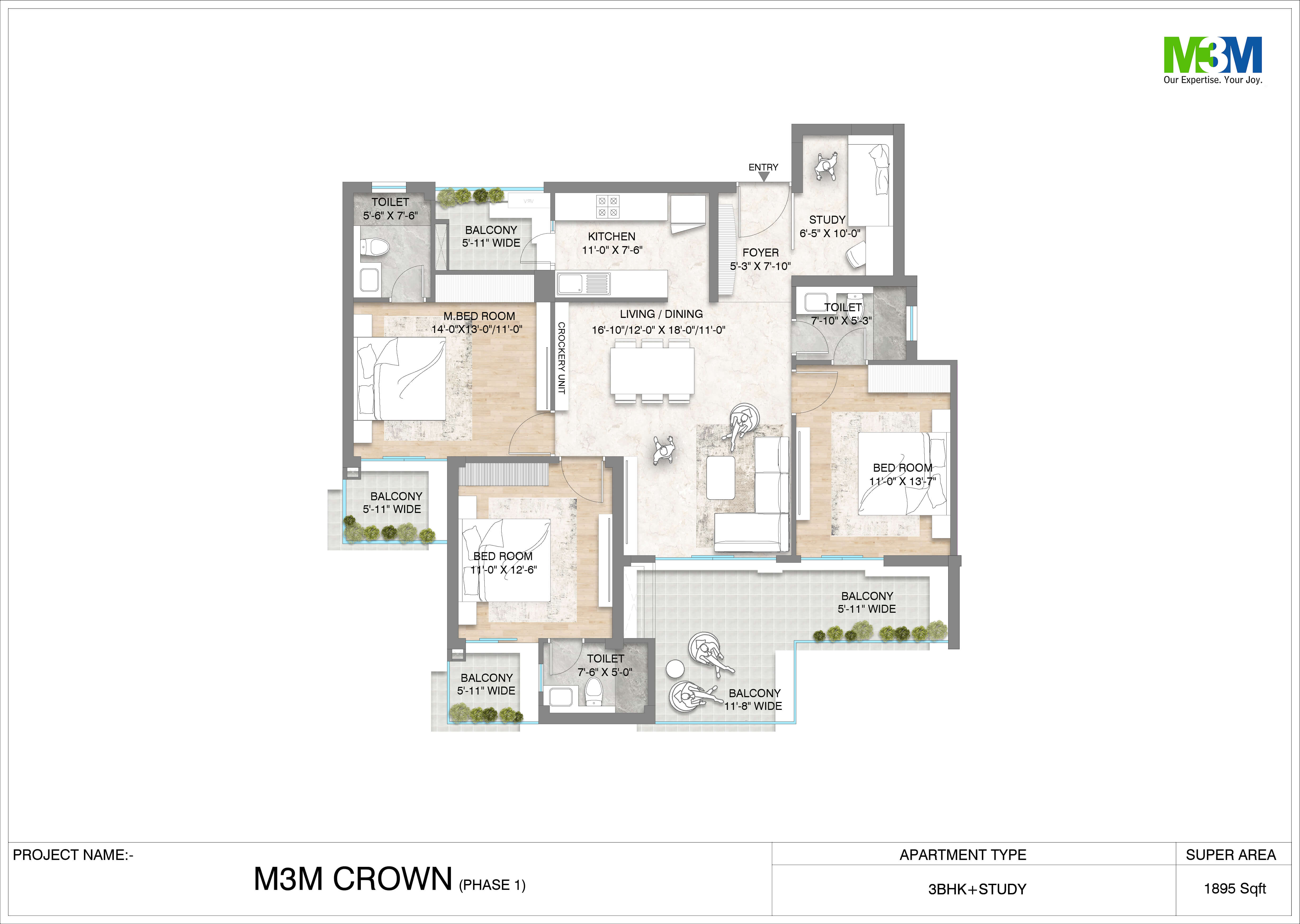 M3M Crown in Sector 111, Dwarka Expressway, Gurgaon, is a luxurious residential project that offers a unique living experience. The project is designed to provide residents with wonderful views from their spacious balconies, surrounded by luxurious greens and spectacular views.The project offers world-class amenities and great connectivity, making it an ideal living destination for those who value comfort and convenience. The floor plans are well-planned and maximize the use of floor space, providing residents with ample space to indulge in their whims and fancies.The project is designed around greenery, with every apartment facing one of the gardens. The gardens have unique structures and spaces, providing residents with a variety of options for leisure activities such as playing, meditating, jogging, or sports.